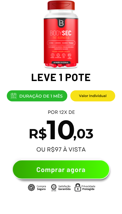 O BodySec foi desenvolvido com uma fórmula avançada que acelera o metabolismo, melhora o funcionamento intestinal e ativa a construção de massa magra